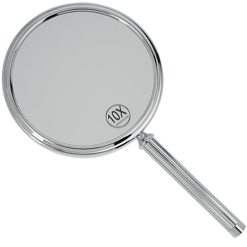 Fantasia Handspegel med handtag – dubbelsidig, normal och 10 x förstoring, Ø 16 cm, längd: 18,5 cm, silver – krom