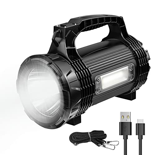 Retoo Handstrålkastare LED-ficklampa extremt ljus uppladdningsbar USB-handlampa sökstrålkastare lykta strålkastare för camping utomhus vandring med batteri och handtag