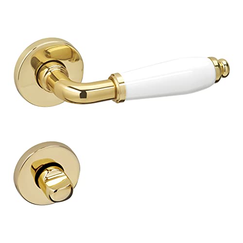 Handtag Set MATTEO mässing look - Dörrhandtag vit dörr montering antik vintage interiör Dörrhandtag badrum (WC) med skruvar av Sotech