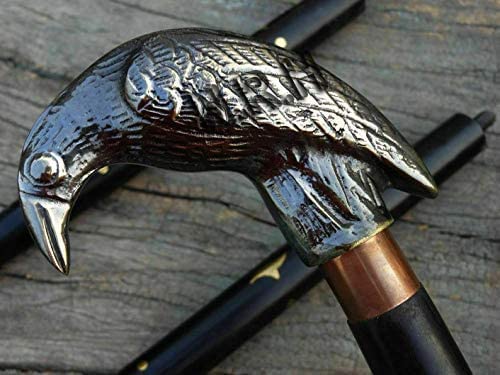 Antik massiv mässing korp huvud handtag nautisk stil promenadstav med svart trä