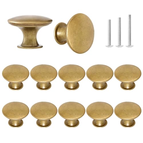 ShipeeKin 12 x skåpknoppar i antik mässing runda vintage retro byrå låda kök svamp handtag drar 30 mm/1,18 tum dörr rustik knopp för garderob bröst badrumsmöbler hårdvara (gul brons)