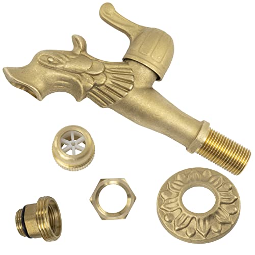AERZETIX - C60240 - Kanel tvättkran för vägg 1/2''"Dragon Head" med antik Retro dekorativt handtag - fontän prydnad badrum vintage kranar trädgård - i mässing