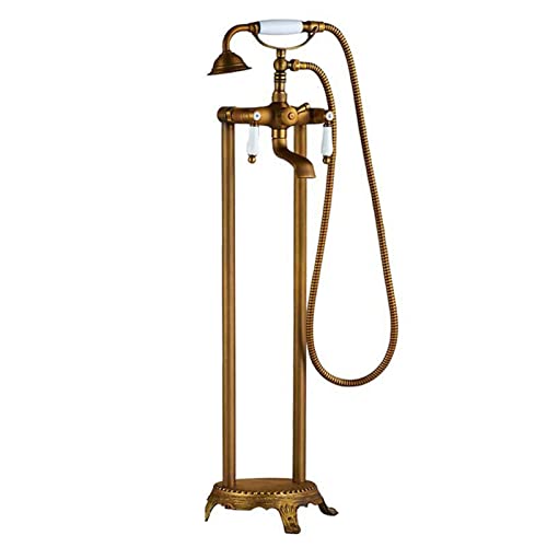 Yalsfowe Fristående badkarskran antik mässing, badkarsblandare, badkarsblandare med handdusch, golvmonterad badkarskran dubbla handtag, mässing,C