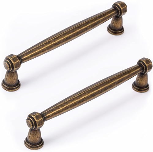SYZOW 6-pack antik mässing köksskåp bar drar, vintage skåphandtag zinklegering kök hårdvara vintage toalettbord låda handtag 96 mm hål center (brons, hål centrum 128 mm)