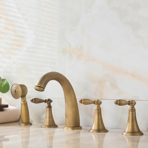 Antik mässing 5-håls badkran set med handdusch och 3 handtag varmt och kallt vatten handfat och badblandare kranar utdragbar design