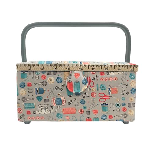 JYC CREATIVE Middle träsöm, tygfodrad sylåda med 8 fack, organisatör med pincett, förvaringslåda med handtag och bricka, (sömnad, medium)