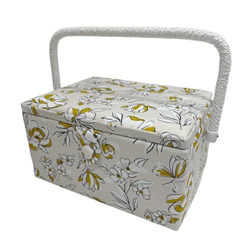 Medium sömmerhållare, tygfodrad sylåda med 8 fack, organisatör med pincett, förvaringslåda med handtag och bricka, (blommor, medium)