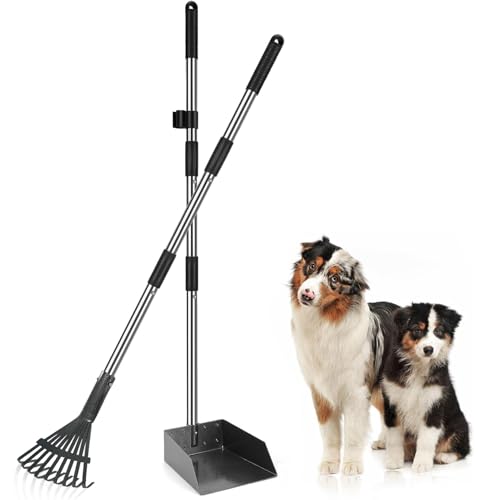 Bamda Bajsskoter, hundbajs-skopa med justerbart långt handtag, hållbar metallkratta och bricka för stora medelstora små hundar, bajsskopa för att samla husdjur avföring, fallna blad, stenar och jord