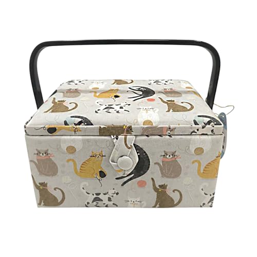 Medium sömmerhållare, tygfodrad sylåda med 8 fack, organisatör med pincett, förvaringslåda med handtag och bricka, (ugglor, medium)