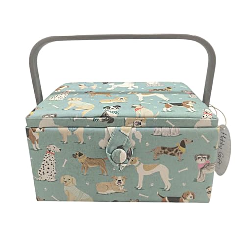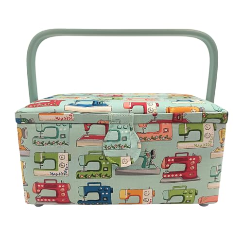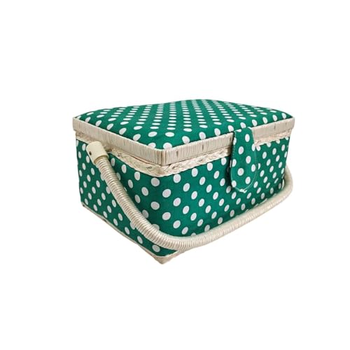 Medium sömmerhållare, tygfodrad sylåda med 8 fack, organisatör med pincett, förvaringslåda med handtag och bricka, (gröna prickar, medium)