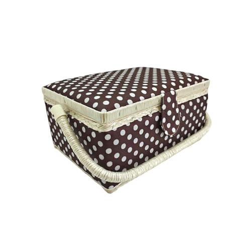 Medium sömmerhållare, tygfodrad sylåda med 8 fack, organisatör med pincett, förvaringslåda med handtag och bricka, (bruna prickar, medium)