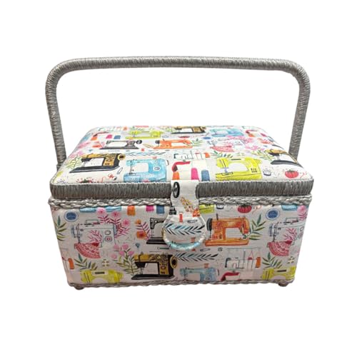 JYC CREATIVE Medium sömmerhållare, tygfodrad sylåda med 8 fack, organisatör med pincett, förvaringslåda med handtag och bricka, (P5, Medium)
