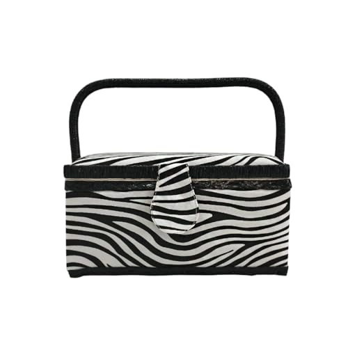Stor sömmerhållare, tygfodrad sylåda med 8 fack, organisatör med pincett, förvaringslåda med handtag och bricka, (zebra, stor)