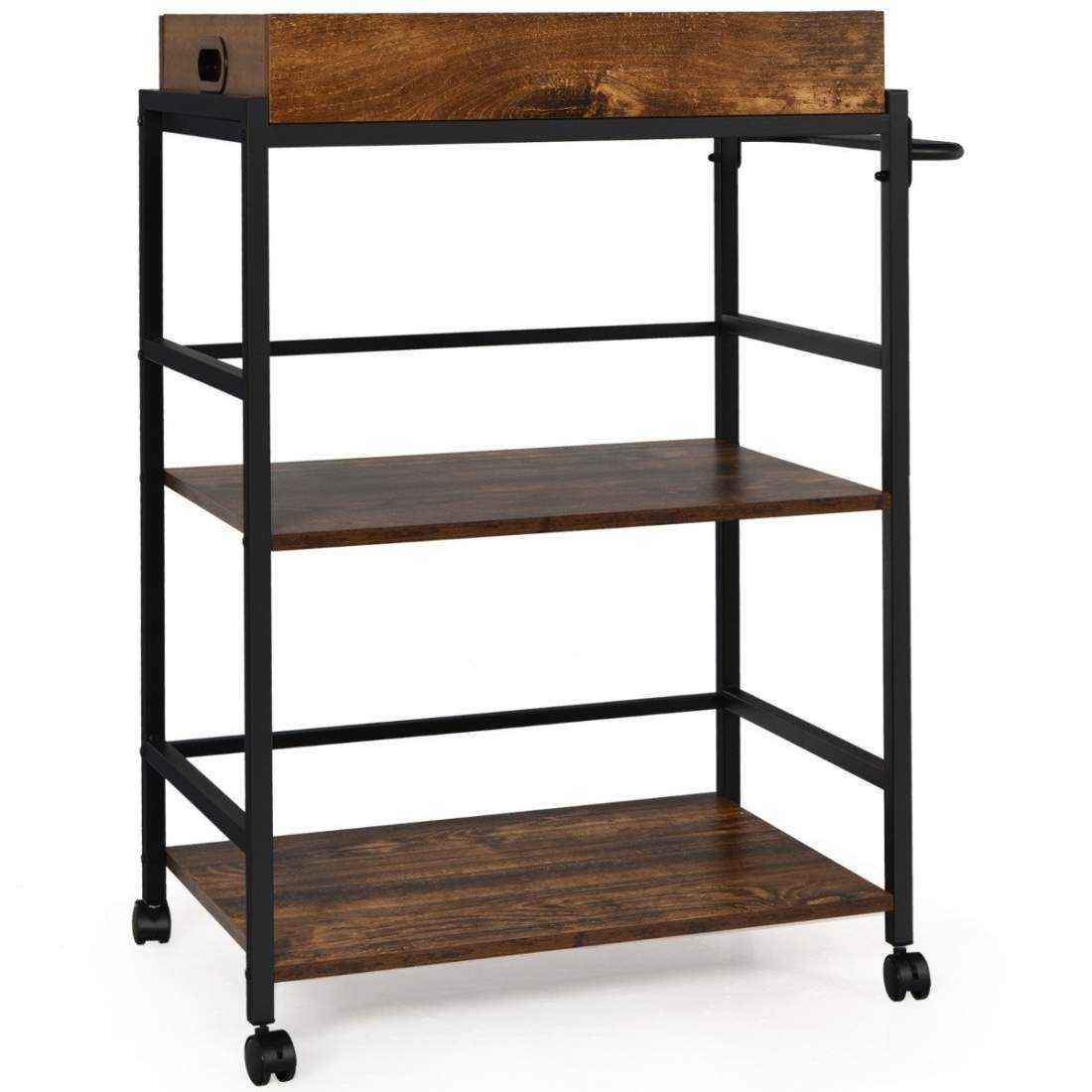 3-vånings serveringsvagn Köksvagn med handtag & avtagbar bricka & metallram Brun