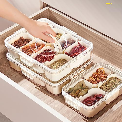 BYNYXI Snackstallrik, plast, snackslåda med 8 fack, snacksskål, serveringsskål med lock och handtag, godis, bricka, serveringstallrik, rektangulär mellanmål, förvaringslåda för sötsaker, frukt, nötter