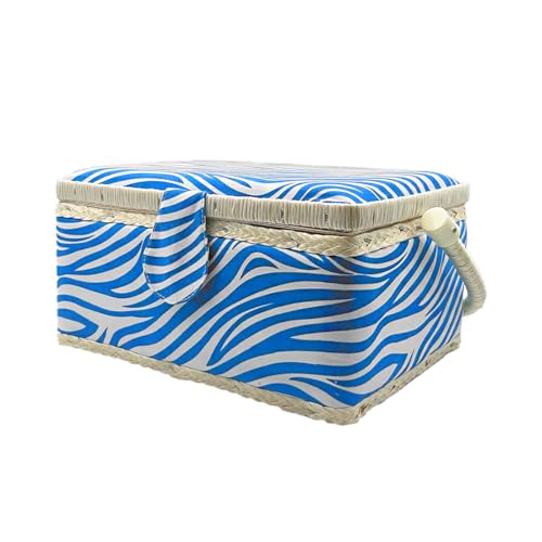 Stor sömmerhållare, tygfodrad sylåda med 8 fack, organisatör med pincett, förvaringslåda med handtag och bricka, (blå zebra, medium)