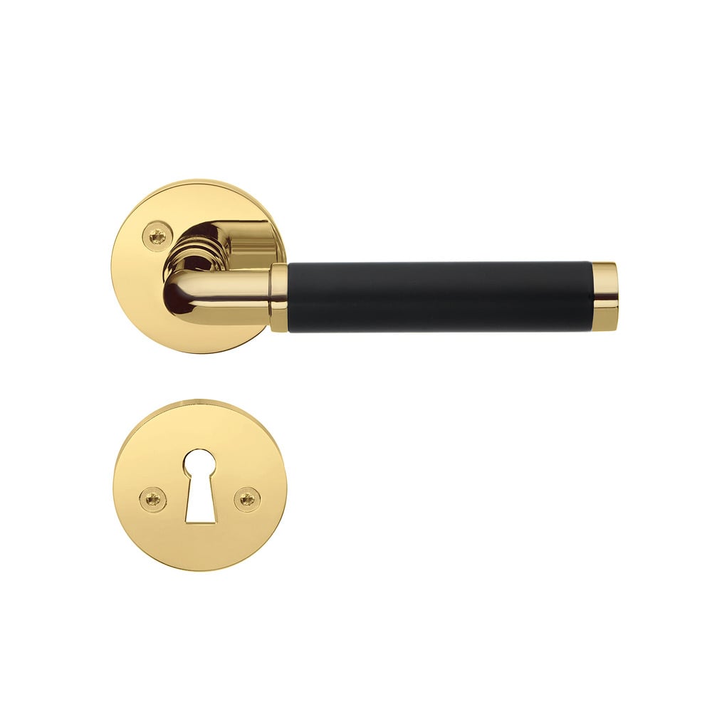 Handtag 1353 - 128mm - Polerad mässing/lädersvept svart