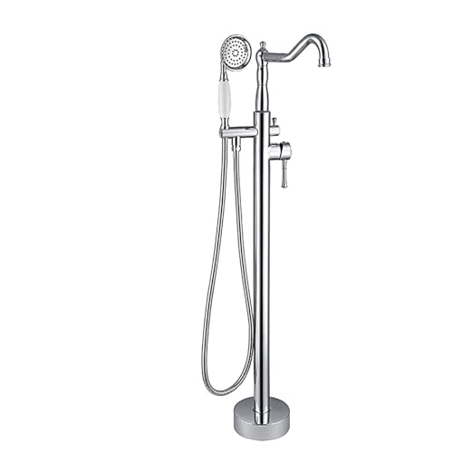 Golvmonterad badkarskran Enkelt handtag,Retro fristående badkarsblandare med handhållen spruta,Tubfyllare i rostfritt stål,Chrome