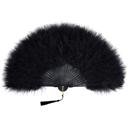 ArtiDeco Damfack Marabou fjäder 1920-talet vintage stil retro solfjäder dam Gatsby kostym flik tillbehör (svart handtag – svart)