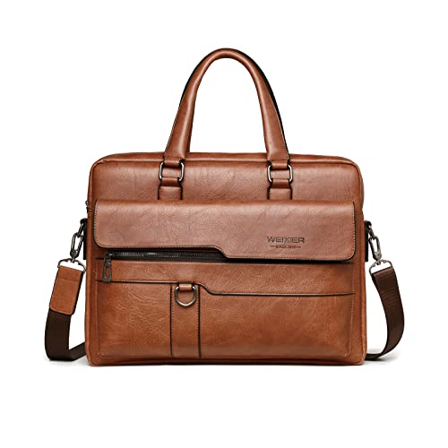 FANDARE Laptop handväska för män affärsportfölj PU-läder arbetsväska axelväska med handtag axelväskor för resor kontor resor skola vattentät messengerväska, Ljusbrun, L, Retro