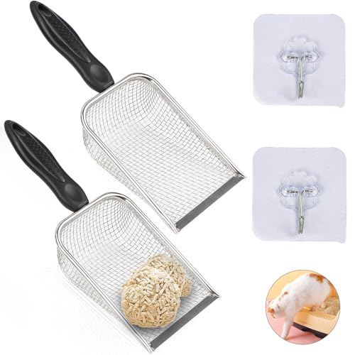 Kattlåda, spade, metall, 2 stycken kattspade, rostfritt stål, för kattlåda, husdjursspade, genomkastning, sil, halkfritt handtag för alla kattströ, jord, sand, stenar, kompost, trädgårdsjord (3,8/5 mm