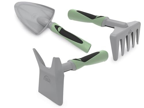 Lena Sandset trädgård 3 delar – sandlåda leksak med spade, kratta och hacka, barnverktyg med gummerade handtag, robust sandleksak för inomhus och utomhus från 2 år
