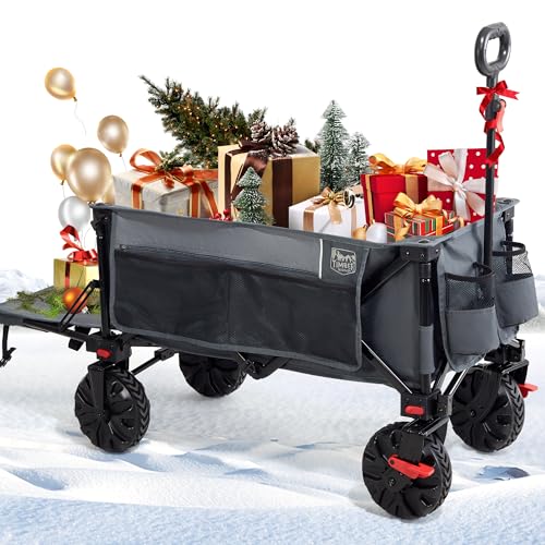 TIMBER RIDGE Festivalvagn 300 L med bromsar, vikbar strandvagn med baklucka, 135 kg hopfällbar vagn avtagbara breda hjul och justerbart handtag för utomhus camping trädgård, grå