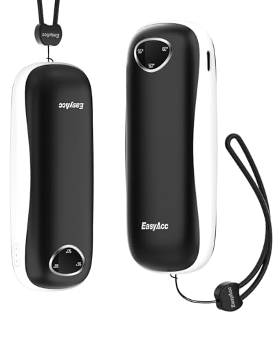 EasyAcc Uppladdningsbar handvärmare, 10 000 mAh elektrisk handvärmare bärbar återanvändbar handvärmare ficka/USB-C/kraftbank, present till Raynaud skidåkning bergsklättring golf