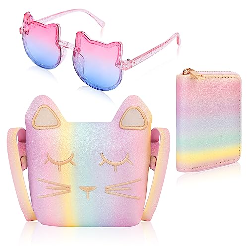 Hifot 3 delar småflickor handväska för barn solglasögon presentset, mini enhörning handväska söt plånbok för flickor småbarn accessoarer presenter presenter, Flerfärgad, S