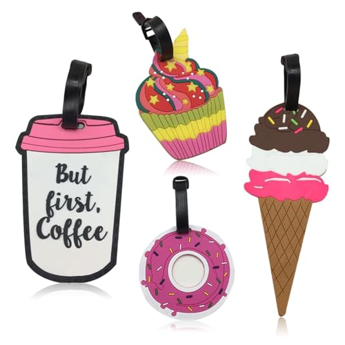 SwirlColor Bagagetaggar för barn, resväska bagagelappar PVC med tecknad film, barn resebagage etiketter ID namnidentifierare för resväska/ryggsäck/resväska/handväska (4 st)
