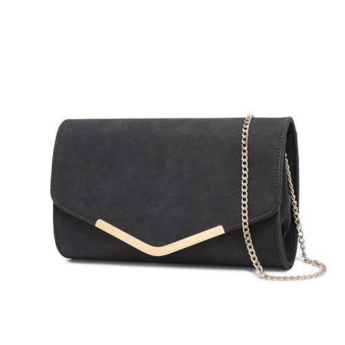 Miss Lulu damer kuvert clutch elegant aftonväska brudväska kuvert kuvertväska handväska med kedja för bröllop fest bal, svart
