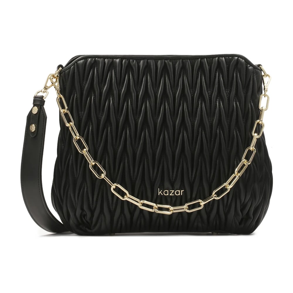 Kazar, Väskor , Dam, ONE Size, Läder, Vadderad svart handväska med kedja och avtagbar rem