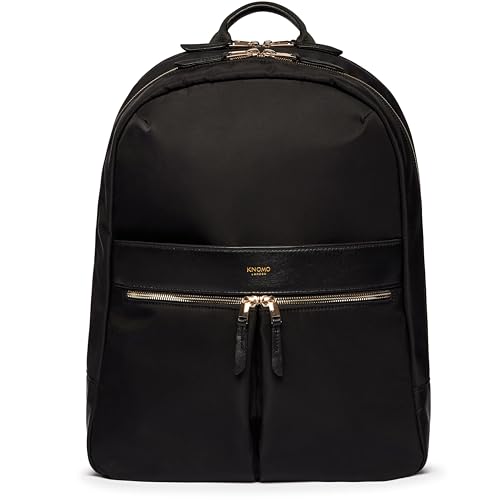 KNOMO Beaufort 15,6 tum dam laptop ryggsäck arbetsväska handväska stor reseryggsäck, svart, Gyllene blixtlås, Ryggsäckar för dagsutflykt
