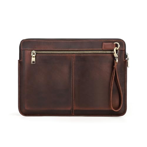 CONTACT'S FAMILY laptopfodral för 14 tum MacBook Pro, äkta läder laptop handväska kompatibel med MacBook Pro 14 tum (kaffe), Kaffe