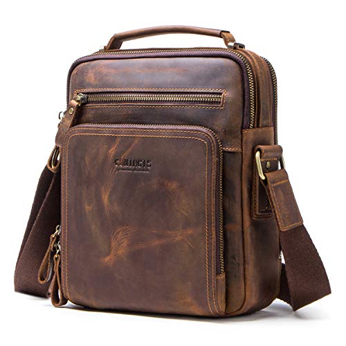Contacts äkta läder män laptop mini Tab Messenger Crossbody väska handväska brun mini axelväskor av äkta läder (kaffe)