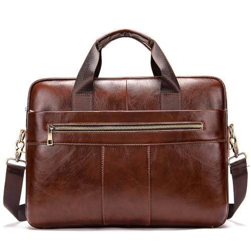 FANDARE Mallette axelväska laptop messenger väska axelväska portfölj portfölj affärsväskor läder vattentät handväska företag reseväska crossbody väska, Brun, L, Portfölj