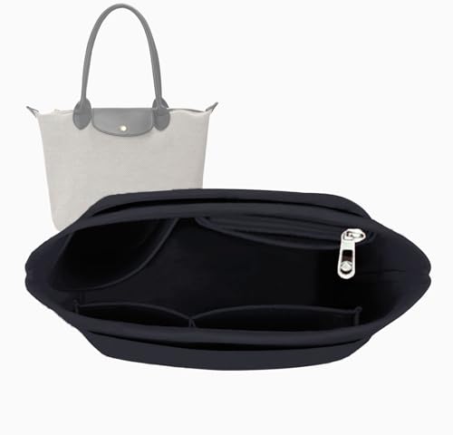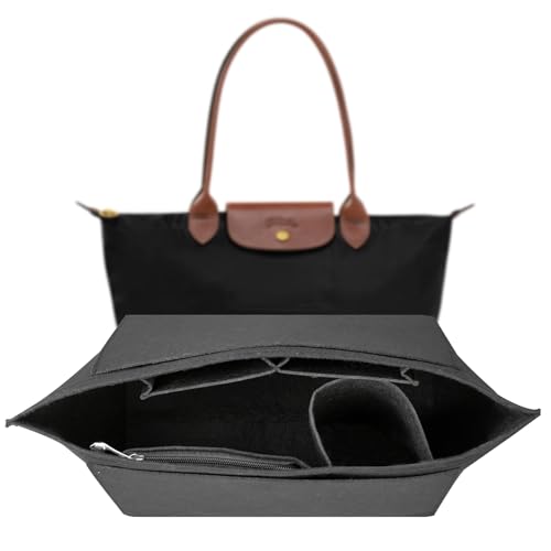 Shengxi Filtväska organiserare för Longchamp hopfällbar tygväska organiseringsinsats flera fickor filt handväska organiserare med dragkedja (svart, L)