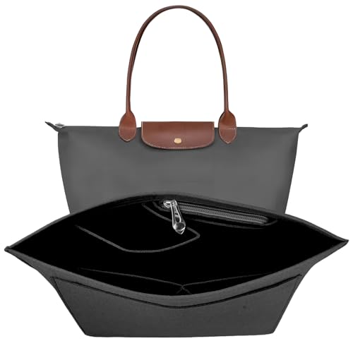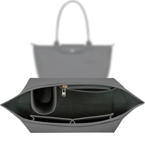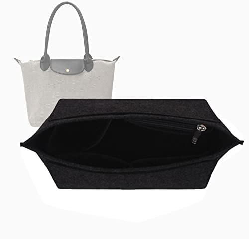 ZOLGINAH Handväska organiserare för Longchamp Le Pliage väska organiserare filt multifunktionella fickor stor kapacitet mörkgrå L