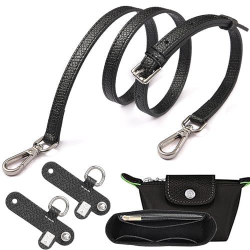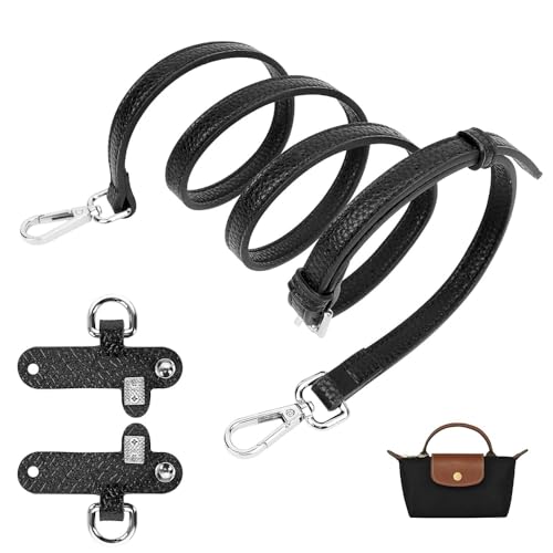 Justerbar axelrem för Longchamp läderväska - handtag för handväska - lämplig för Longchamp-väskor för kvinnor och små väskor (1,2 cm axelbandsbredd) - viktigt tillbehör (svart)