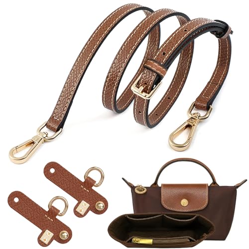 Justerbar axelrem för Longchamp läderväska - handtag för handväska - lämplig för Longchamp-väskor för kvinnor och små väskor (1,2 cm axelbandsbredd) - viktigt tillbehör! (Brun)