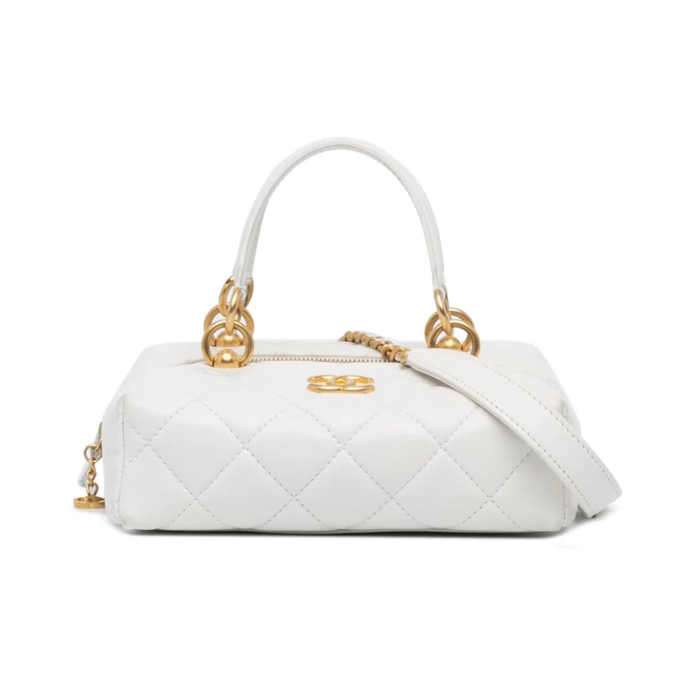 Chanel Vintage, Vintage , Dam, ONE Size, Förägd Strukturerad Topp Handväska med Avtagbar Axelrem och Metall Detaljer