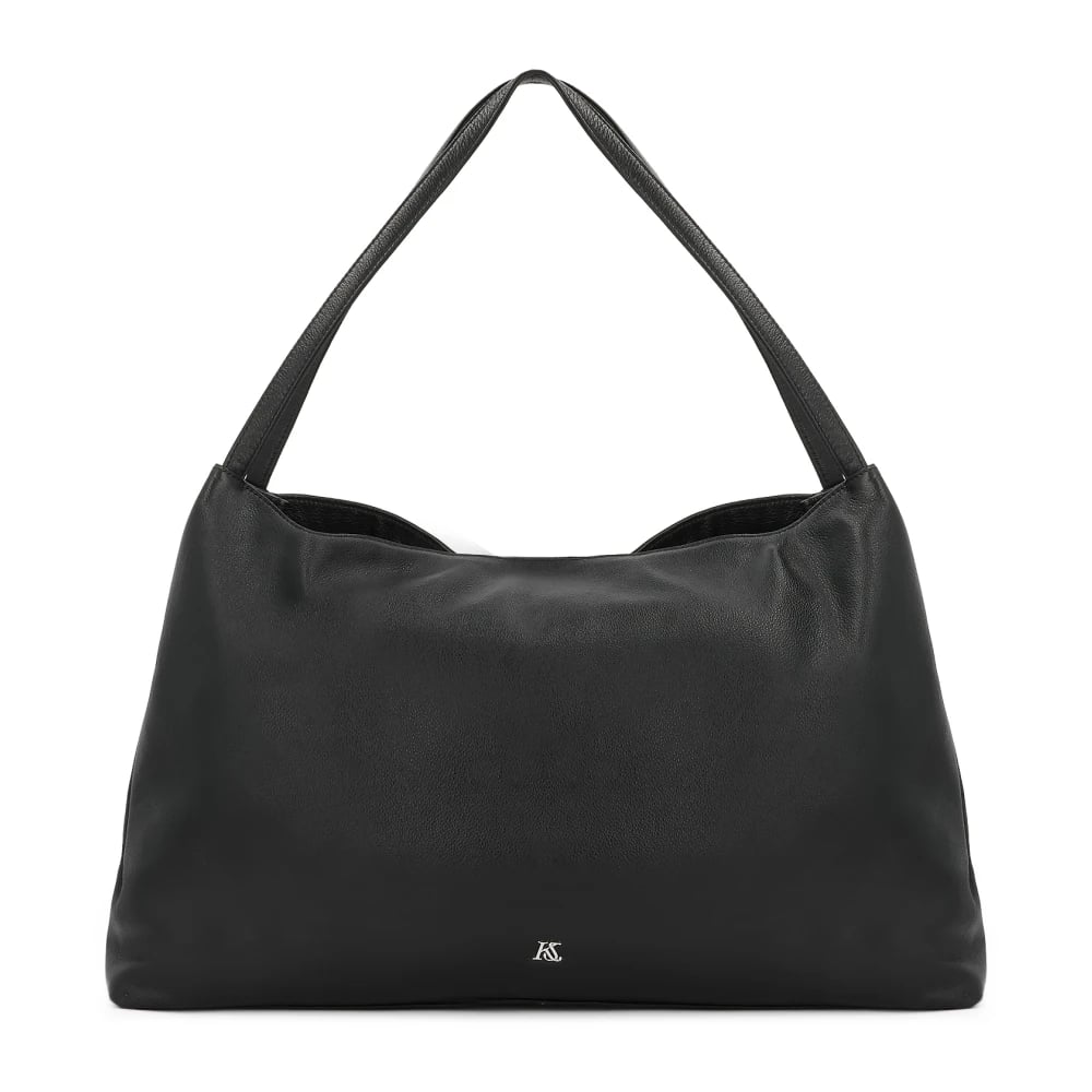 Kazar Studio, Väskor , Dam, ONE Size, Läder, Svart trapezformad handväska med axelrem