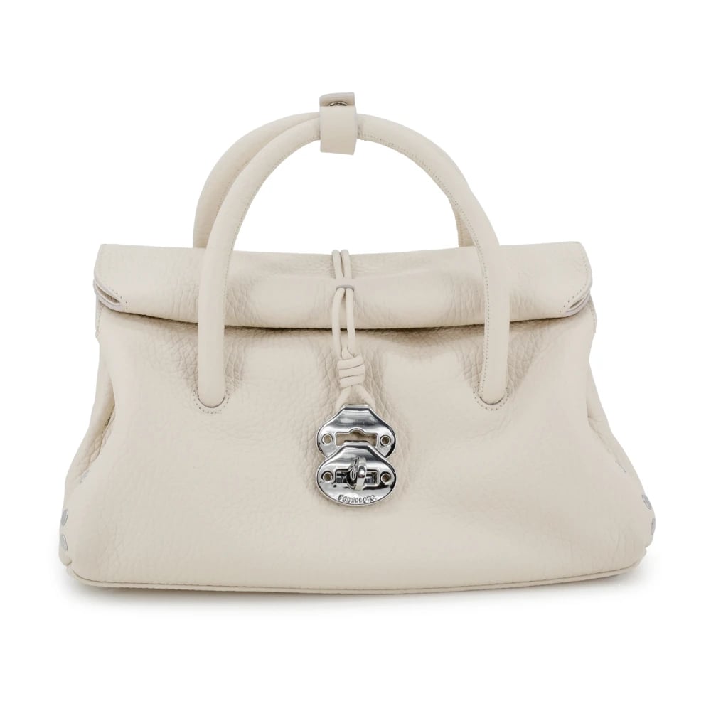 Zanellato, Väskor , Dam, ONE Size, Vit Räfflad Textur Handväska med Nitar