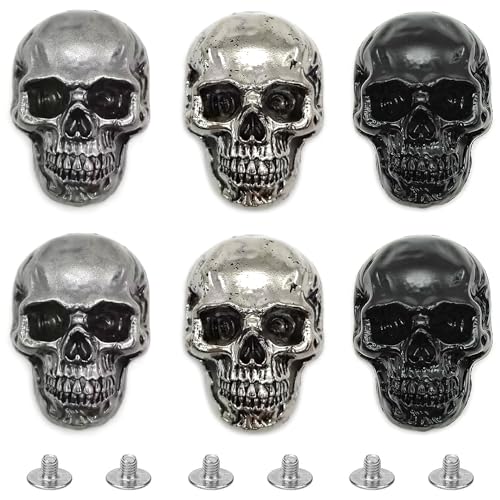 Niuhong 6 st dödskalle konchos hantverk 3D skalle skruvlock läder nitar dekorera punk cool skruv gör-det-själv hantverk reparation handväska plånbok kläder skor dekor