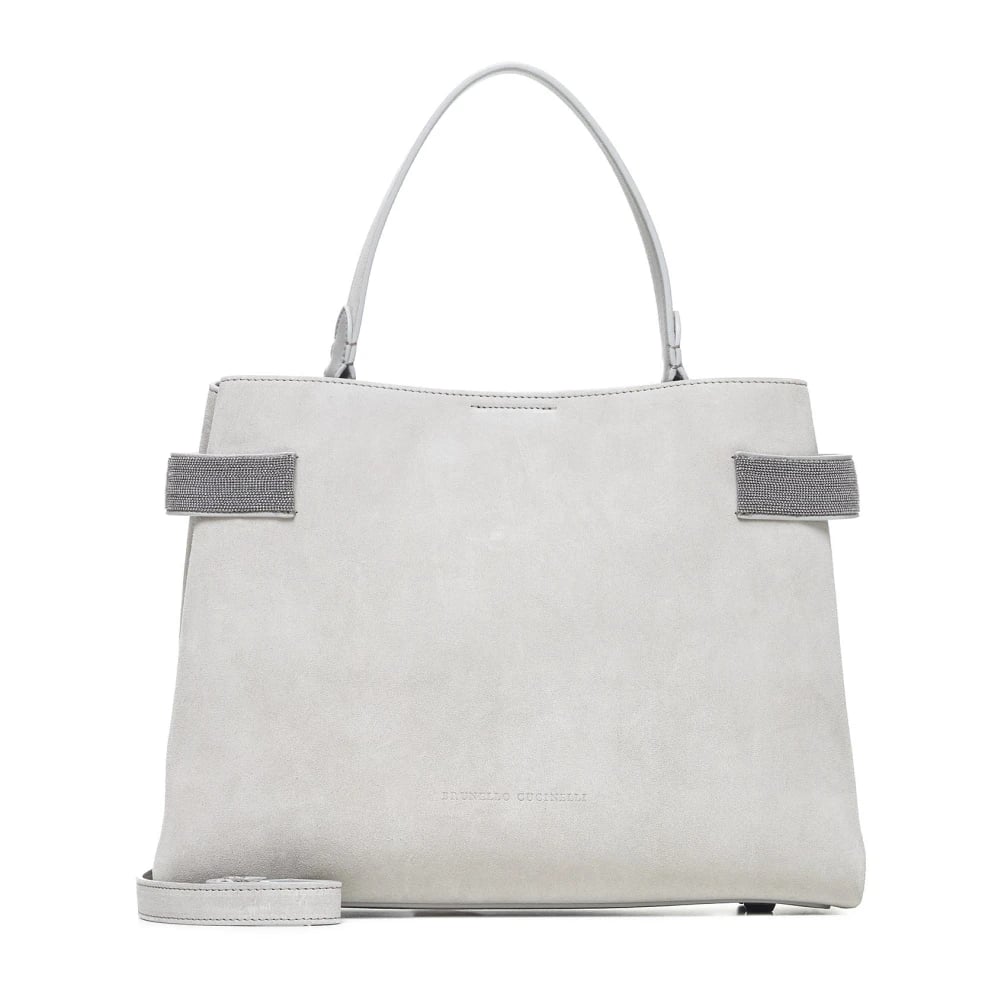 Brunello Cucinelli, Väskor , Dam, ONE Size, Mocka, Essence Ecru Mocka Handväska
