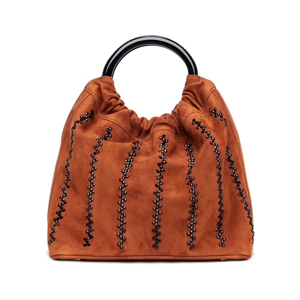 Marina Raphael, Väskor , Dam, ONE Size, Mocka, Dekorerad Hassel Mocka Handväska