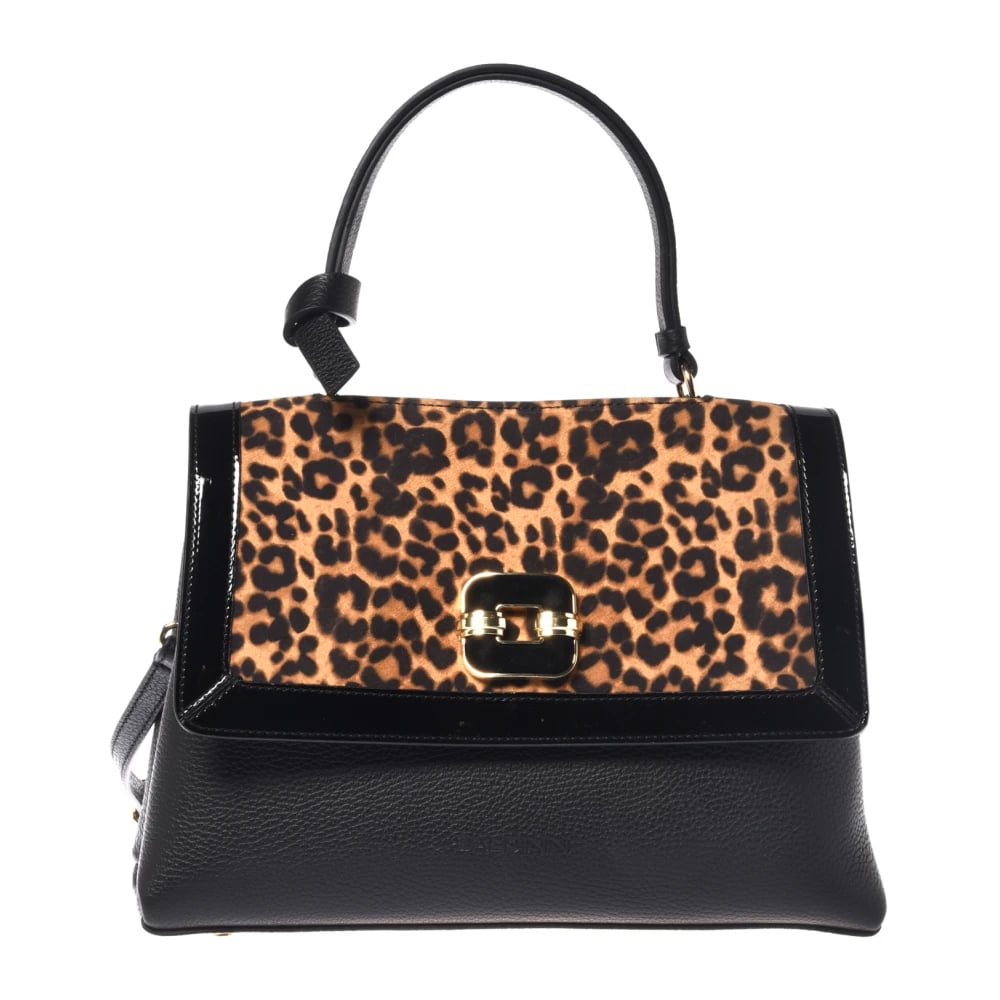 Baldinini, Väskor , Dam, ONE Size, Läder, Handväska i leopardmönstrad mocka och narvläder