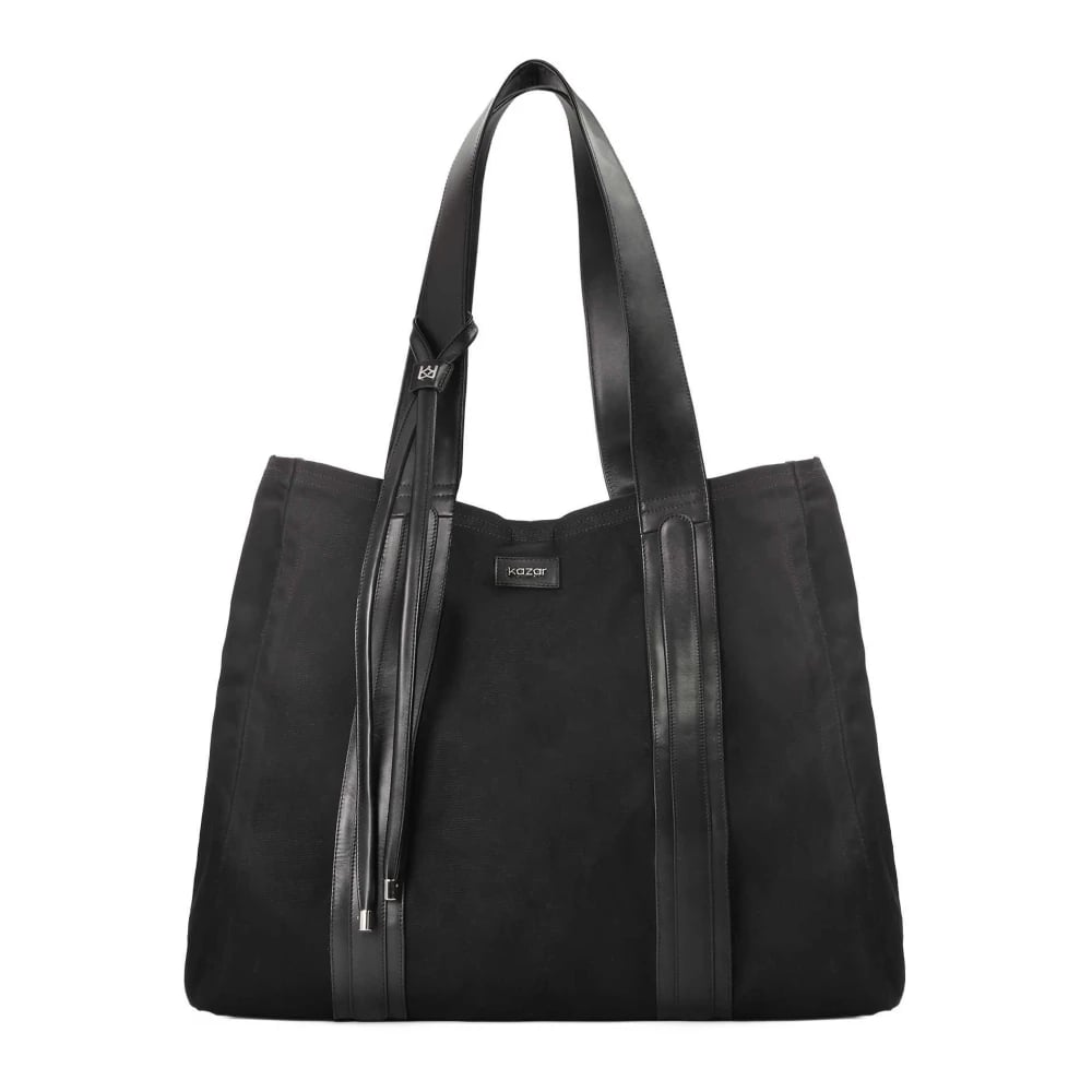 Kazar, Väskor , Dam, ONE Size, Läder, Stor handväska gjord av canvas tyg och naturläder