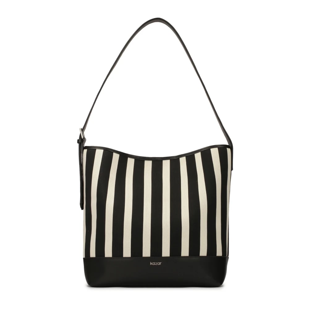 Kazar, Väskor , Dam, ONE Size, Läder, Stor randig handväska i tyg och läder