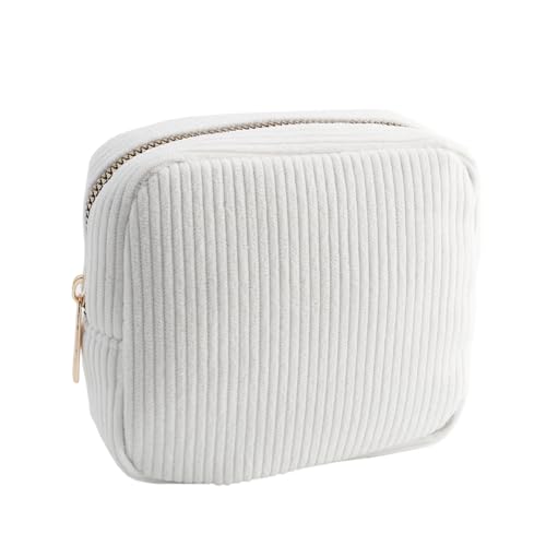 Sminkväska liten för handväska med dragkedja i metall, sminkväska, liten, minisminkväska för damer, necessär för resor, nödvändigheter, väska snöre tyg vit för necessär, Vit, Modernitet